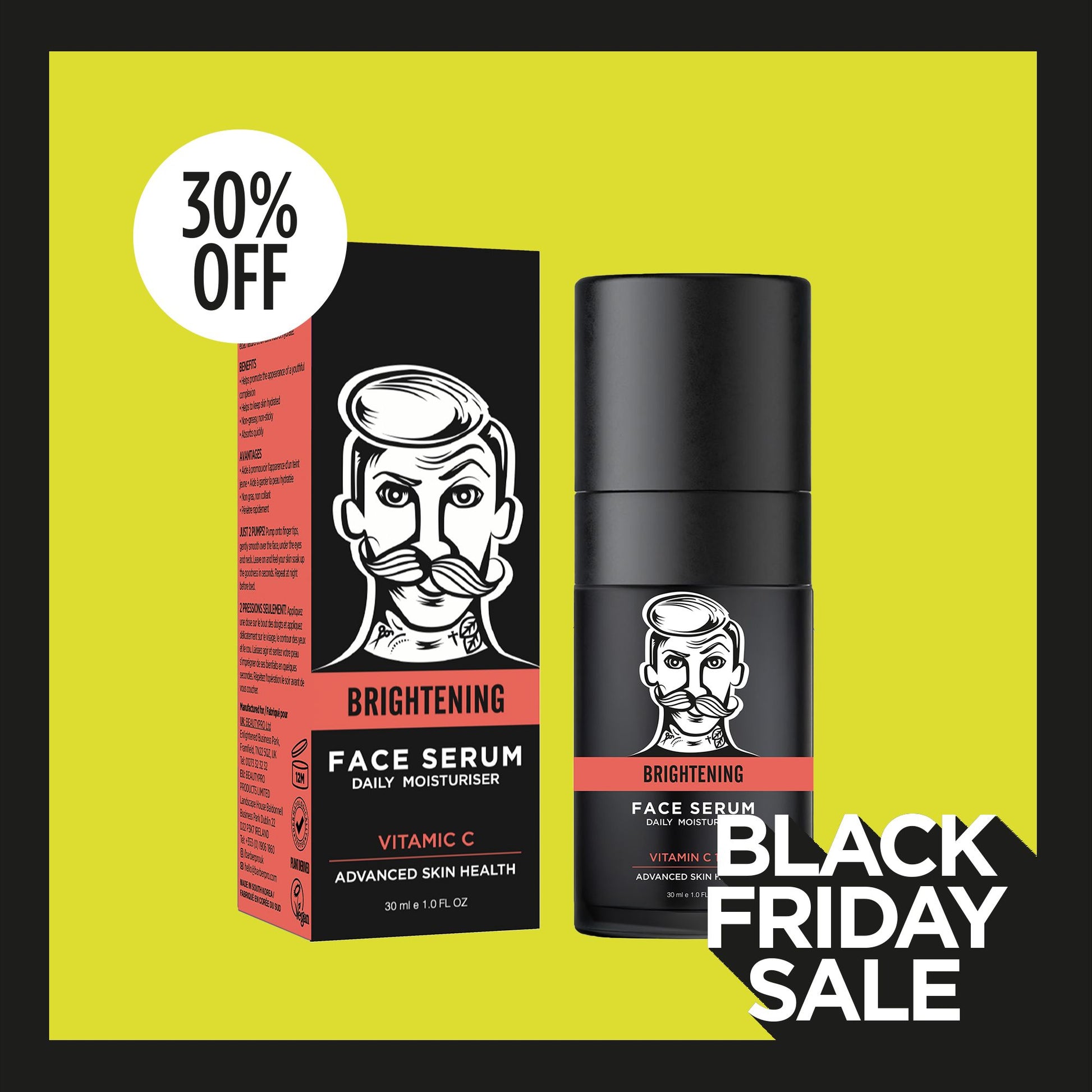 After washing your face, apply this serum to the face: 3 pumps in the morning and 2 at night. Smooth the serum gently into the skin in an outward motion and let the product absorb. Pair with your favourite BARBER PRO face sheet mask once a week.